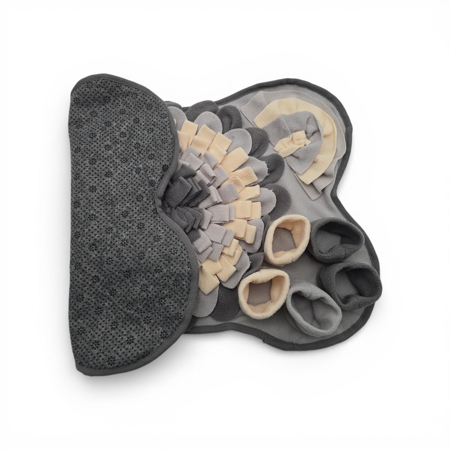 "Der Schnüffelteppich ist ein Highlight für jeden Hund. Spass, Training und Slow-feeding in einem. Einfach Leckerlis in die Laschen und Öffnungen verstecken und schon kann das interaktive Spiel beginnen"